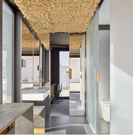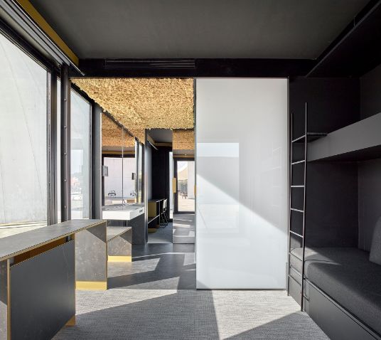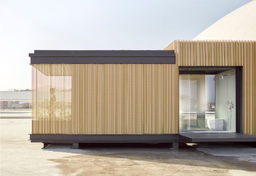Las habitaciones inteligentes y conectadas de Room 2030 se fabrican con procesos de construcción industrializados y materiales innovadores. Cada habitación se plantea como un conjunto de módulos flexibles con diferentes usos: descanso, aseo u ocio. Muy flexibles, permiten múltiples configuraciones y son totalmente personalizables. El mobiliario se diseña oculto y ergonómico. El resultado son espacios confortables y aislados del ruido exterior, y los módulos se plantean con fachadas o cubiertas verdes.