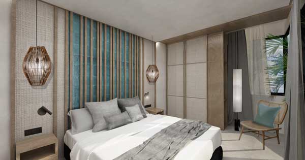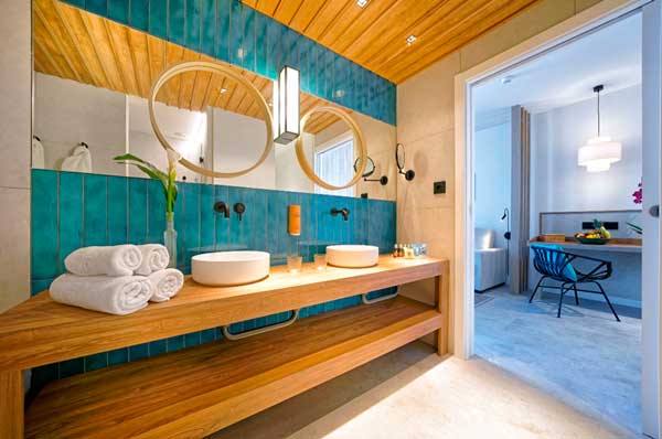Para el hotel Labranda Suites Costa Adeje han optado por destacar su carácter tropical, su vinculación con el paisaje y la fuerza de la costa de Tenerife. La vegetación de la isla es un punto clave en el diseño; los colores verdes de la flora se difuminan con los azules y aguamarina del océano, en contraposición con los tonos de la tierra canaria, que van desde los negros y grises de sus arenas y rocas a los terreos y ocres.