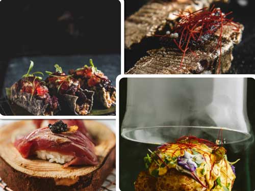Los platos de los locales Salvaje destacan por la complejidad de matices que consigue recurriendo a los ahumados con distintos tipos de maderas aromáticas, a los marinados y la maduración previa del pescado crudo que sirve en sus niguiris, sashimis, makis, hosomakis y tiraditos. Entre las especialidades más demandadas destacan los originales rolls, toda la gama de niguiris y sashimis y algunas opciones calientes como el dumpling de bogavante, la coliflor con puré de ají, los carabineros a la robata, el bacalao negro, o el wagyu A5 con arroz al wok, caviar y huevo. Además de la carta, se ofrece un menú Omakase, elegido directamente por el chef, elaborado con lo más fresco y exclusivo del mercado.