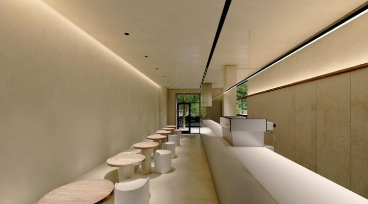 De estética minimalista, Manosanta nace para convertirse en la primera churrería de nueva generación de Madrid. Su interiorismo es obra de Ana Cue Estudio y Noray Estudio, que han tratado de “generar un espacio en el que los valores de marca (tradición, innovación y minuciosidad) se vean retratados, trabajando en un diseño que expresa la artesanía intrínseca del propio churro”.