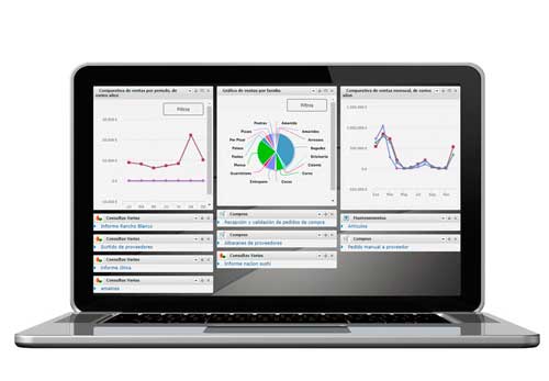 – Gracias al módulo de consultas multidimensionales se pueden realizar diferentes estadísticas sobre la gestión de la empresa, tanto de compras, ventas, clasificada por artículos, clientes, proveedores etc.