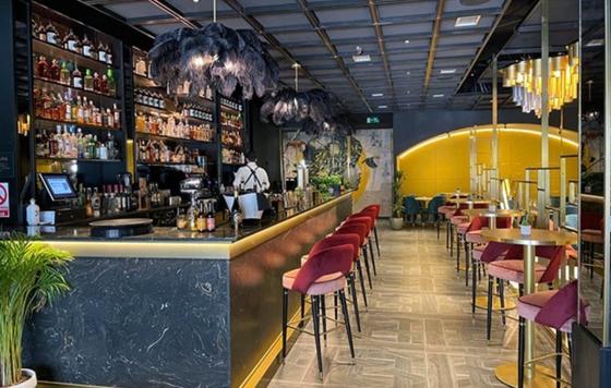 La firma ha creado para este establecimiento madrileño un personal estilo art-decó fusionado con motivos panamericanos, que gracias a sus detalles geométricos y de color crean una atmósfera de sofisticación que invitan a sus comensales a la diversión y el disfrute.