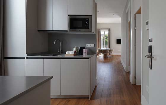 Estos modernos y espaciosos apartamentos de diseño cuentan con cocinas totalmente equipadas, baños contemporáneos y una capacidad entre 4 y 6 personas, perfectos para familias grandes o incluso pequeños equipos de trabajo. En la decoración interior destacan diferentes obras y elementos realizados específicamente por artistas seleccionados por Numa.