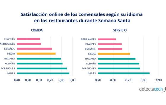 Satisfacción online de los comensales según su idioma en los restaurantes durante Semana Santa 2023