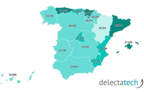 ProfesionalHoreca, Precio medio por restaurante en cada comunidad autónoma durante Semana Santa 2023, estudio de Delectatech