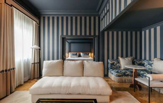 En los pisos superiores, las habitaciones y suites están decoradas con una combinación llamativa de colores suaves y audaces, textiles exquisitos, papeles pintados personalizados y obras de arte originales, complementadas con toques modernos.