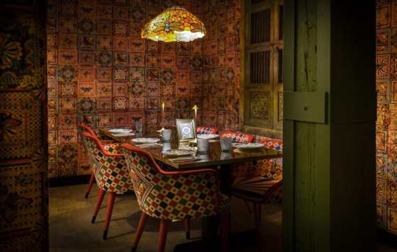 Después de cruzar el salón principal, se accede a una zona más íntima y reservada que acoge a grupos más grandes de comensales, obras de arte y un photocall instagrameable.