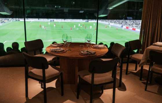 El proyecto es obra del estudio de arquitectura Fondo Estudio y del estudio de diseño e interiorismo MIL Studios, que han trabajado conjuntamente en la construcción de este espacio, apostando por conservar los cimientos y pilares de hormigón de la estructura del estadio y combinarlos con otros elementos como el mármol o la madera, añadiendo elegancia y calidez al lugar.