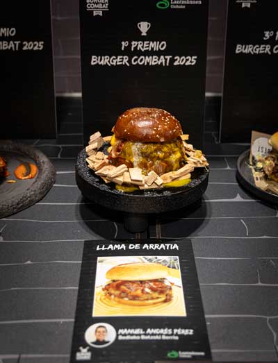 Manuel Andrés Pérez, del restaurante Bediako Batzoki Berria, en la localidad vizcaína de Bedia, se ha proclamado mejor chef de hamburguesas gourmets de España 2025 al ganar el V Campeonato Burger Combat. Lo ha hecho con la suculenta burger ‘Llama de Arratia‘, con la que ha querido homenajear a este valle del País Vasco que le adoptó hace ya cinco años.