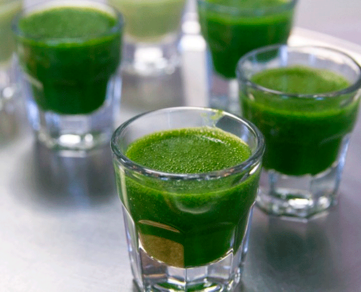 Hacer este zumo sólo requiere una pequeña bandeja en la que crece la hierba de trigo verde y la máquina exprimidora (con un valor en torno a 60 euros).Además, la fibra que queda tras extraer el jugo a la hierba es «un potente antibiótico y cicatrizante», afirma el cocinero.