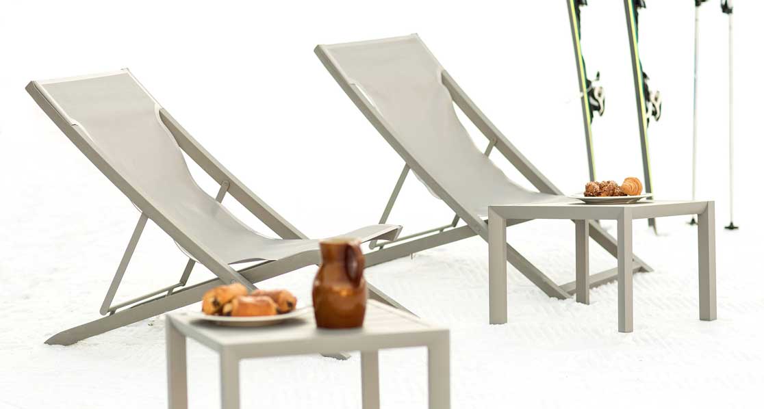 Tumbonas y mesas Sunset, en el nuevo tono gris claro