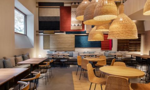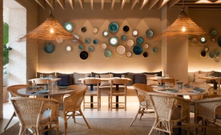 […] el restaurante se aprecia el característico estilo mediterráneo de la cadena. Se compone de dos casas (una más pequeña de una sola altura y otra más grande de dos alturas), […]
