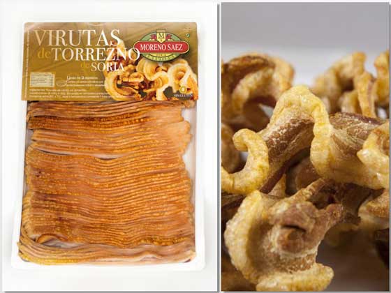 Embutidos Moreno Sáez presenta una novedad para ofrecer en cualquier establecimiento hostelero un auténtico Torrezno de Soria en tiempo récord y sin conocimientos culinarios. Sus Virutas de torrezno de Soria para hostelería están elaboradas con panceta de cerdo adobada de alta calidad cortada en finas tiras, precocinada y envasada para preservar sus características únicas durante más de tres meses tras su fecha de elaboración. Al freírlas en dos minutos aceite caliente se rizan y convierten en un snack fino y crujiente.