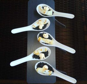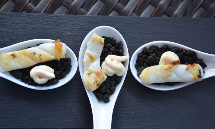 Profesionalhoreca, calamares con ali oli sobre tierra de tinta, Sepink, tapa