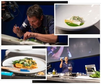 Frente a él, la visión gallega de Javier Olleros (Culler de Pau), que nutre su cocina con los productos de la Ría de Arousa, donde se ubica su restaurante. A su juicio, las rías son aún grandes desconocidas, e hizo especial hincapié en su diversidad biológica, su riqueza y en el potencial culinario de sus productos.