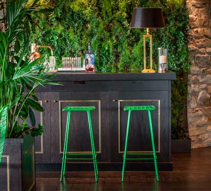 Un «must have» imprescindible es añadir un toque de verde a la decoración del establecimiento, sobre todo en verano: desde una pared de jardín vertical hasta pequeños adornos de decoración con plantas. No se concibe una instalación veraniega si no hay vegetación. Estos taburetes modelo Faro en verde pino intensifican la atmósfera verde y natural: