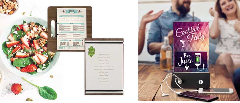 Securit, marca de la firma holandesa G. Vermes B.V., está especializada en elementos de señalización y comunicación para la hostelería: pizarras, portacartas, porta menús, carteles… Sus portamenús luminosos con Led, por ejemplo, son muy demandados en establecimientos con poca luz. La oferta es muy amplia: desde sofisticados porta-cartas con Led para coctelerías o locales nocturnos, a otros portamenús «verdes» hechos en madera para entornos de comida saludable: