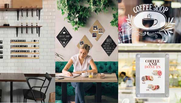 Otra de las soluciones Securit son los murales en las paredes con el menú de platos y bebidas; el vinilar o rotular las cristaleras con mensajes directos (“servicio a domicilio”, “brunch”,“bebidas naturales”, “cocina non stop”…) o la amplia gama de pizarras para barra, cristaleras o exterior, todo ello con el objetivo de transmitir mensajes ordenados, sencillos y directos que lleguen al consumidor:
