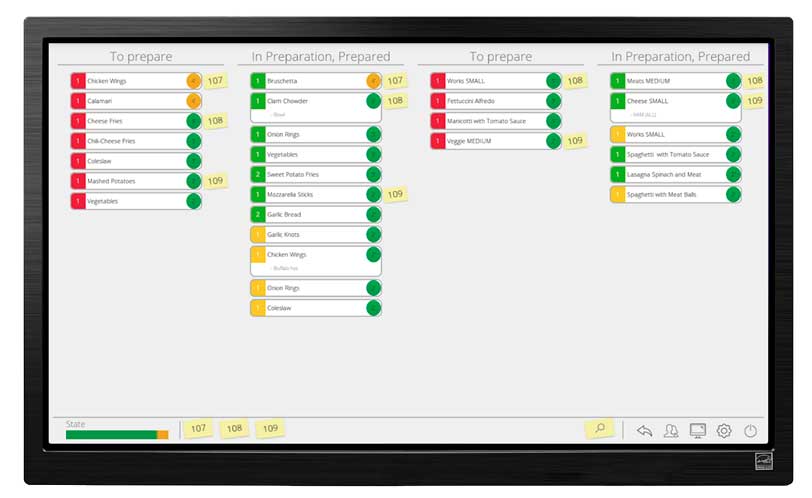 - Gestión de pedidos en cocina con Hioscreen: este sistema de pantallas de cocina ayuda a optimizar la gestión del restaurante recibiendo los pedidos tomados en la mesa o en la barra. Permite gestionar la preparación de los mismos e informar de una forma visual del estado de cada uno de los platos. Ofrece tres visualizaciones distintas: la pantalla cocina, la de tareas y la de pedidos:
