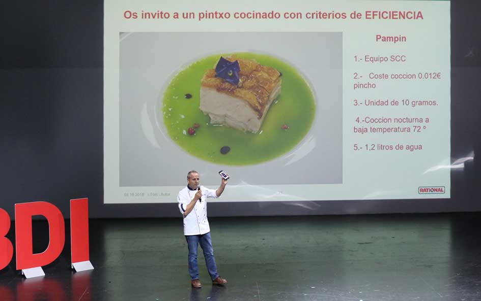 Pablo Torres, chef corporativo de Rational, enseñando a cocinar un pintxo con criterios de eficiencia
