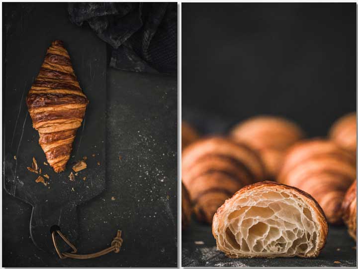 El croissant Sophie es único gracias al proceso de elaboración double pointage siguiendo los parámetros slow – cold – long. Comienza con un amasado, reposo y fermentación lentos para facilitar la unión perfecta de hojaldrado y sabor. Después, para conseguir una estructura y un alveolado únicos, se realiza un enfriamiento controlado a baja temperatura (cold).  Finalmente, las horas de dedicación (long) cierran el ciclo del double pointage para conseguir un croissant excepcional