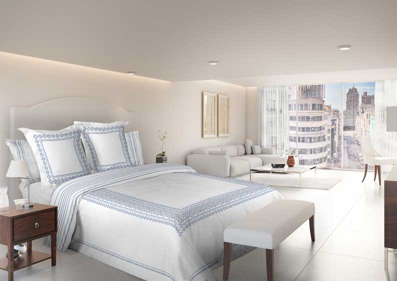 Innovación en los textiles de cama: la firma Vayoil presenta Indanthren, una revolucionaria tecnología que permite una estampación digital resistente a los agresivos lavados industriales a los que son sometidas estas prendas en los hoteles. ¿Las posibilidades de diseño? Infinitas.