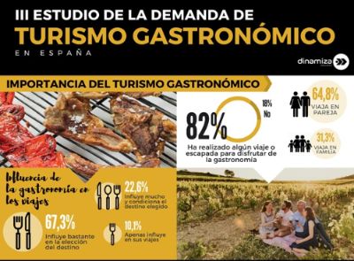 El turismo gastronómico sigue ganando adeptos cada año. Actualmente, un 82% de los españoles realiza viajes o excursiones con la intención de disfrutar de la gastronomía, según el nuevo estudio de la demanda de turismo gastronómico que elabora la consultora Dinamiza.
