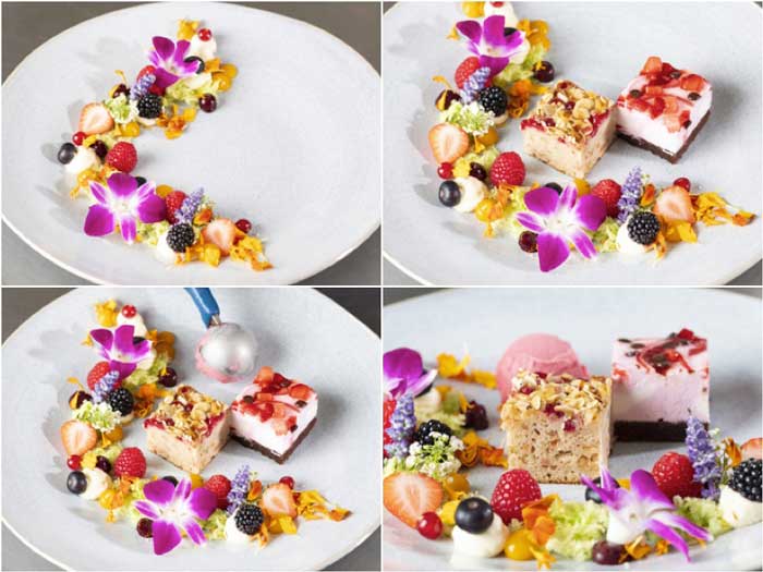 Profesionalhoreca, elaboración del postre vegano Mar de flores, con tartas de Erlenbacher