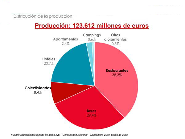Son datos el Anuario de la Hostelería de España 2019, que acaba de presentar la federación Hostelería de España y que destaca que la hostelería es una de las ramas productivas de de la economía española. En concreto, representó un 6,2% del PIB en 2018, del que un 4,7% procede de la restauración y un 1,5% del alojamiento. Una cifra que, pesar del crecimiento en facturación, supone una bajada en peso porcentual con respecto al 7,2% que aportaba al PIB en 2017, «debido al reajuste de las diferentes actividades y al mayor control de la economía sumergida».