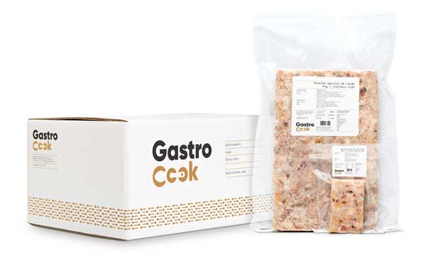 Entre las referencias que Gastrocook elabora destacan las planchas de cochinillo, meloso de ternera, meloso de cordero o meloso de cerdo, así como los rulos de manitas de cerdo en formato plato principal o aperitivo. Como novedad la empresa ha lanzado los rulos rellenos para porcionar y presentar en formato tournedó, como el rabo de vacuno deshuesado y relleno de foie, o las manitas de cerdo rellenas de setas.