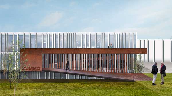 Alzado exterior del proyecto de la nueva sede de Zummo, en La Eliana (Valencia)