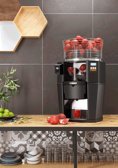 El modelo Z14 Contactless se caracteriza además porque, con su sistema de exprimido exclusivo EVS no sólo exprime cítricos, sino también granadas, una opción original y saludable de plena actualidad y muy bien valorada por los clientes.