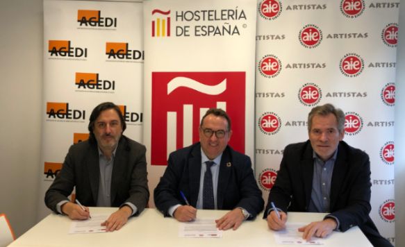 Hostelería de España ha renovado el acuerdo de colaboración que mantiene desde 2014 con Agedi y AIE, las entidades de gestión de los derechos de propiedad intelectual de los productores fonográficos y de los artistas intérpretes o ejecutantes, respectivamente.