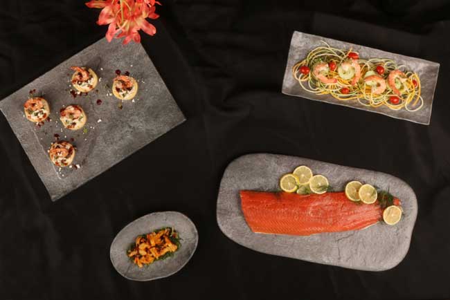 Por su parte, la colección Moonstone se compone de platillo y diferentes bandejas perfectas para servir aperitivos o platos para compartir, en color gris piedra. Su superficie rugosa e irregular se inspira en la superficie de la luna, y queda perfecta en las mesas de bistrots y gastrobares: