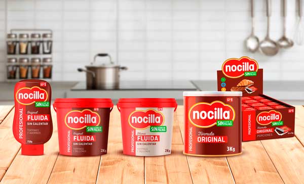 Nocilla Profesional es una gama dirigida al canal horeca que ofrece una solución de valor para el sector con sus dos referencias Nocilla Fluida, con la crema de cacao fluida, sin necesidad de calentar, y Nocilla Original, la de siempre.