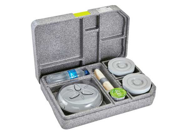 Ideal para el transporte de menús, se trata de una caja fabricada en polipropileno expandido que dispone de tres compartimentos, que ayudan a acomodar todas las piezas necesarias en el transporte de un servicio completo de manera segura.