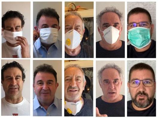 Los cocineros se quitan su mascarilla de protección y, en pleno confinamiento doméstico, lanzan un mensaje de optimismo y esperanza a todo el sector terciario e invitan a unirse tanto a compañeros de profesión, proveedores y clientes como a grandes corporaciones e instituciones públicas y privadas. «Es el momento de que todos demos la cara y luchemos más unidos que nunca«, afirman los hosteleros.