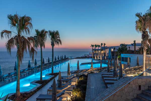 Uno de los espacios estrella del resort es la piscina infinita de 54 metros y pared de cristal, suspendida sobre el acantilado. Reservada solo para adultos, los huéspedes podrán relajarse en las hamacas acuáticas y las camas balinesas, con música y bar con carta de sushi y platos frescos y saludables. Hay otro piscina el centro de La Laguna, perfecta para familias, a la que se suma la piscina del spa Pure Seven, perfecta para la relajación.