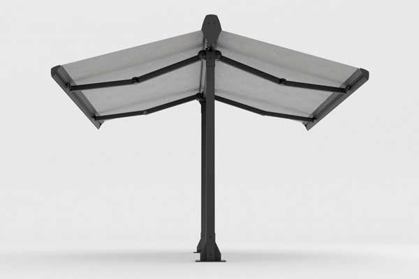 Gracias a su sólida estructura con perfiles de sustentación fabricados en acero, este toldo de doble salida cuenta con un mecanismo de protección solar articulado de gran durabilidad y diseñado para aportar sombra a ambos lados.