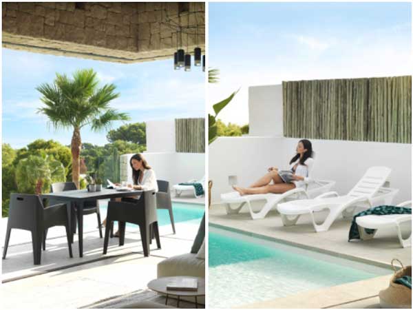 Además, otros productos de mobiliario de exterior que destacan por combinar su diseño innovador con materiales reciclados son el set Diva y el nuevo set Frigatte, con líneas redondeadas.