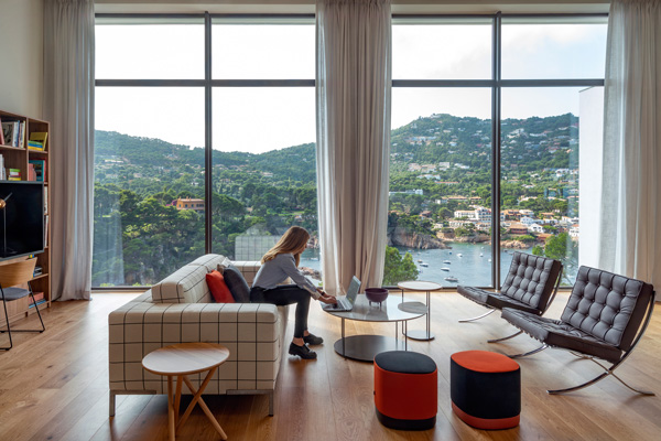 En la intervención se ha procurado que todas las estancias aprovechen al máximo la luz natural a través de grandes cristaleras que optimizan al máximo las vistas panorámicas al mar que rodea todo el edificio. Así, en los salones se han creado pequeños espacios que invitan al visitante a relajarse y dejarse cautivar por el paisaje. Cada rincón se haá estudiado al milímetro.