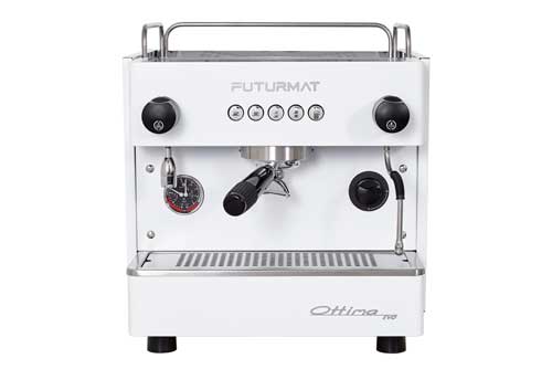 Futurmat Ottima Evo de 1 grupo destaca por su diseño elegante y de líneas simples, pero al mismo tiempo robusto y sus reducidas dimensiones de 42 x 45 x 52 cm, con lo que cabe en cualquier sitio.