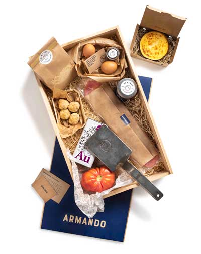 Ahora dan un paso más allá y lanzan Armando Maker, una caja pensada para regalar y preparar el escalope Armando en casa. Contiene la materia prima y las herramientas necesarias para preparar el escalope, y se completa con varios entrantes y un postre para disfrutar de una comida o cena para dos.