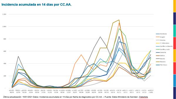 La interpretación de los datos de las propias Comunidades Autónomas tampoco deja lugar a dudas. Ante modelos de gestión muy dispares, como puede ser el caso de la Comunidad de Madrid, que ha apostado por la contención del virus con menos restricciones a la hostelería, o Cataluña, que optó por el cierre total, los datos demuestran que las curvas son paralelas, sin que el cierre de la hostelería haya supuesto una contención del virus. Lo mismo ha sucedido en otras CC AA como Castilla León y Andalucía. En el caso de Cantabria, tras dos meses y medio con los interiores cerrados, la tasa de contagios ha subido un 34%.