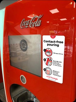 Gracias a la tecnología Mobile Pour que Coca-Cola está incorporando en sus máquinas Freestyle, el consumidor puede acceder a hasta 109 opciones de refrescos desde su propio móvil, sin necesidad de contacto. Basta con escanear el código QR de la pantalla de la máquina para seleccionar y obtener la bebida.
