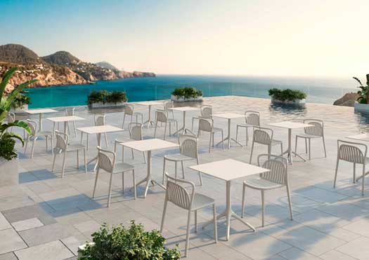 Profesionalhoreca, mesas de aluminio Uni y sillas Classe, de Möwee