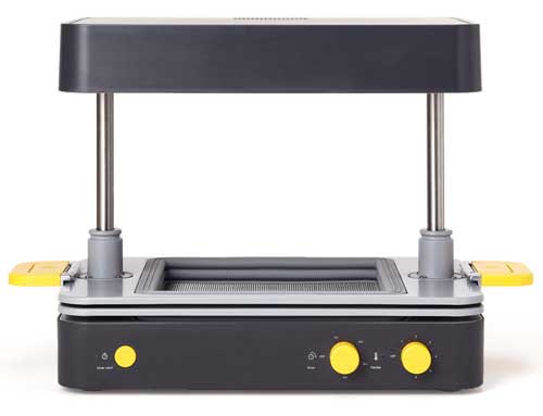 No hay botones ni configuraciones complicadas, y la máquina permite ajustar el tiempo y temperatura según el material que se esté utilizando.