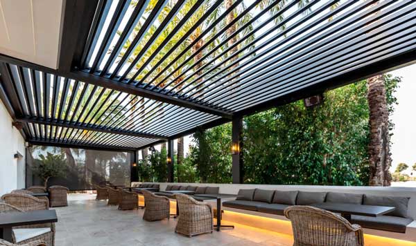 Profesionalhoreca, detalle de la pérgola Saxun en el restaurante La Masía de Chencho