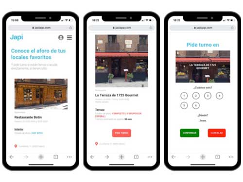 Básicamente, Japi ofrece información a los usuarios sobre el estado del aforo, en tiempo real, de sus establecimientos cercanos.