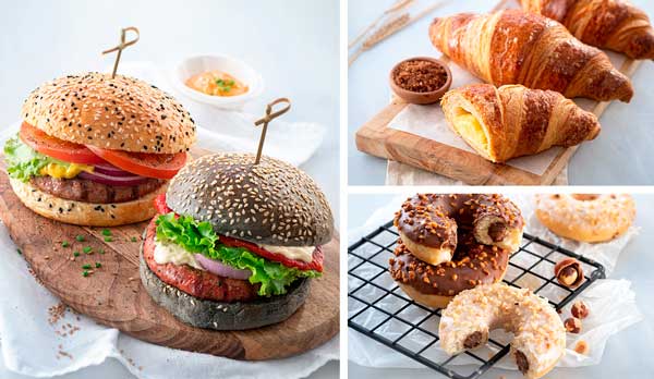 • Los nuevos Burger Black con Sésamo y Burger con Sésamo y Comino Negro son dos panes redondos especiales, totalmente cocidos, ideales para preparar hamburguesas gourmet de forma fácil y rápida.